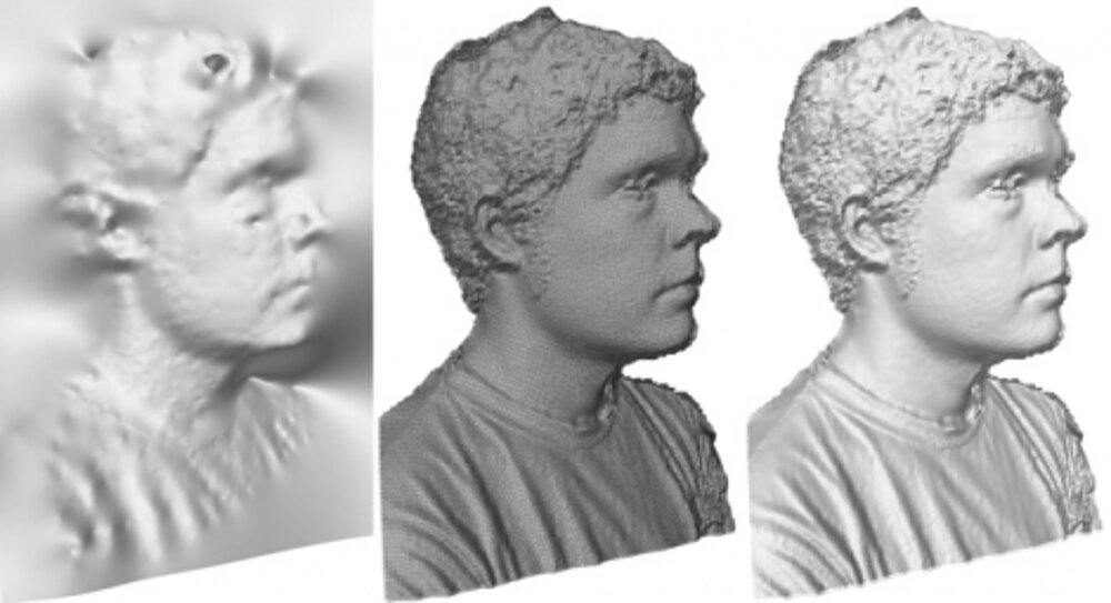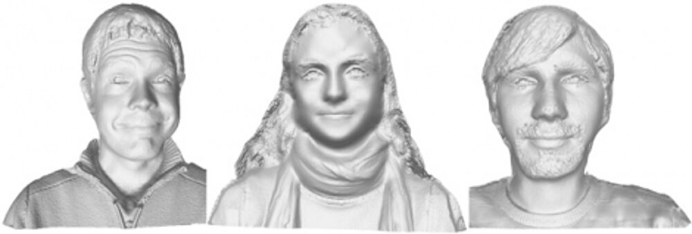 We are developing algorithms for reconstructing the human head in high detail from calibrated images. Our method is passive, i.e. we do not use projected patterns (as, for example, structured light approaches do) and we don’t use photometric normals. We are interested in recovering not only fine details in the face but also the appearance and some geometric detail of the subject’s hair, thereby capturing the complete human head. This is challenging due to the intricate geometry of hair and its complex interaction with light.