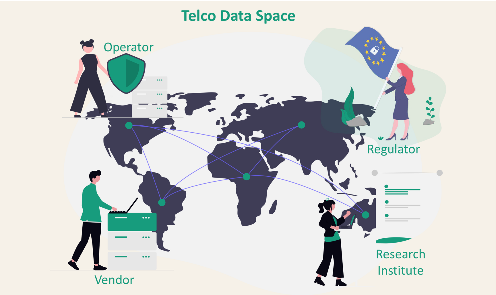 The Telco Data Space enables trusted, policy-enforced data exchange between operators, vendors, and research ecosystems. Built on the principle of data sovereignty, it supports AI-driven automation, interoperability, and new service models in open and disaggregated networks. It ensures that data access always respects data ownership, confidentiality and compliance, while enabling collaborative innovation.